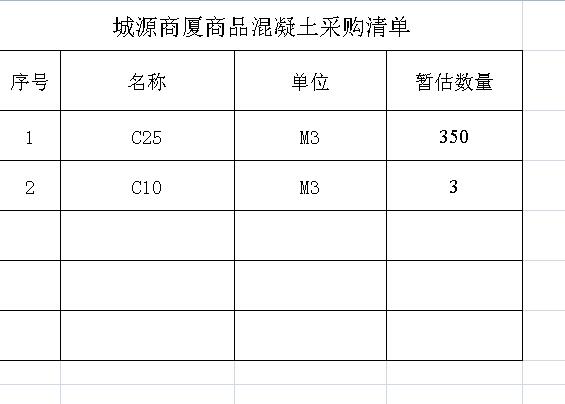 (4)采購(gòu)內(nèi)容:城源商廈室外景觀工程商品混凝土的采購(gòu)并運(yùn)輸?shù)讲少?gòu)人要求的指定地點(diǎn),采購(gòu)清單詳見(jiàn)附件。