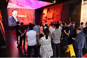 走進(jìn)歷史選擇廳,集團(tuán)黨員一起穿越了120多年的時(shí)光隧道,共同回顧了甲午戰(zhàn)爭以來中華民族救亡圖存的曲折歷程,深刻理解了歷史和人民為什么選擇共產(chǎn)黨、為什么選擇社會(huì)主義等重大話題,進(jìn)一步增強(qiáng)了對(duì)社會(huì)主義的理論自信、道路自信、制度自信、文化自信。面對(duì)黨旗,集團(tuán)黨委副書記孫曉東同志帶領(lǐng)全體黨員一起重溫入黨誓詞:“我志愿加入中國共產(chǎn)黨……為共產(chǎn)主義奮斗終身,隨時(shí)準(zhǔn)備為黨和人民犧牲一切,永不叛黨。”鏗鏘有力的宣誓聲久久回蕩在館內(nèi),深深感染了現(xiàn)場(chǎng)所有人……